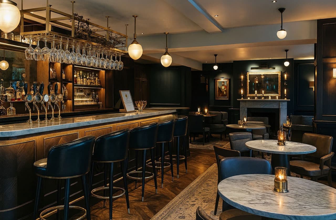 Working to an overall budget of £2.5 million, the project involved a comprehensive refurbishment and reimagining of the building. The design strategy focused on creating a diverse offering under one roof, balancing character and craftsmanship with comfort and functionality. A new bar, restaurant and dedicated events space were introduced, each with its own identity yet connected through a cohesive design language. In addition, 28 luxury hotel suites were designed to offer a refined and welcoming experience for overnight guests.
