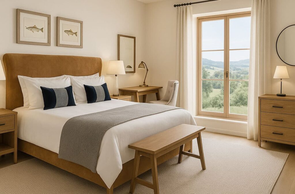 Every piece of furniture, fixture and equipment was carefully selected to complement the building’s character and the overall design vision. From bespoke joinery and lighting to soft furnishings and accessories, we ensured that every element contributed to a cohesive, high-quality experience for guests. Procurement, scheduling and installation were managed end-to-end to maintain consistency and quality.